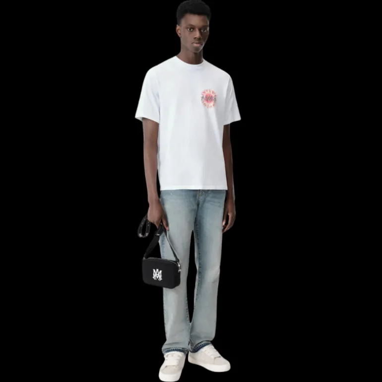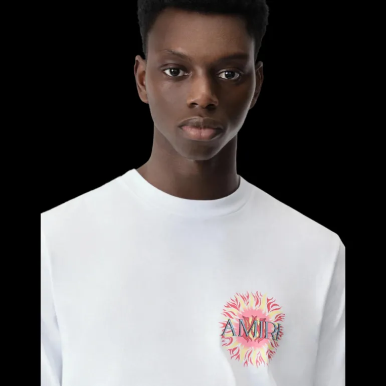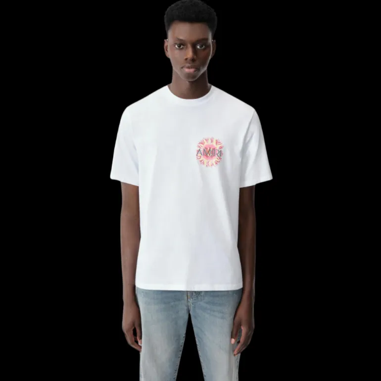 L’esprit d’un été californien sans fin guide la collection de vêtements pour hommes pré-automne 2024. Le t-shirt Amiri Sun est illustré du logo Sun Graphic de la saison sur la poitrine et le dos.