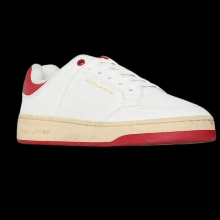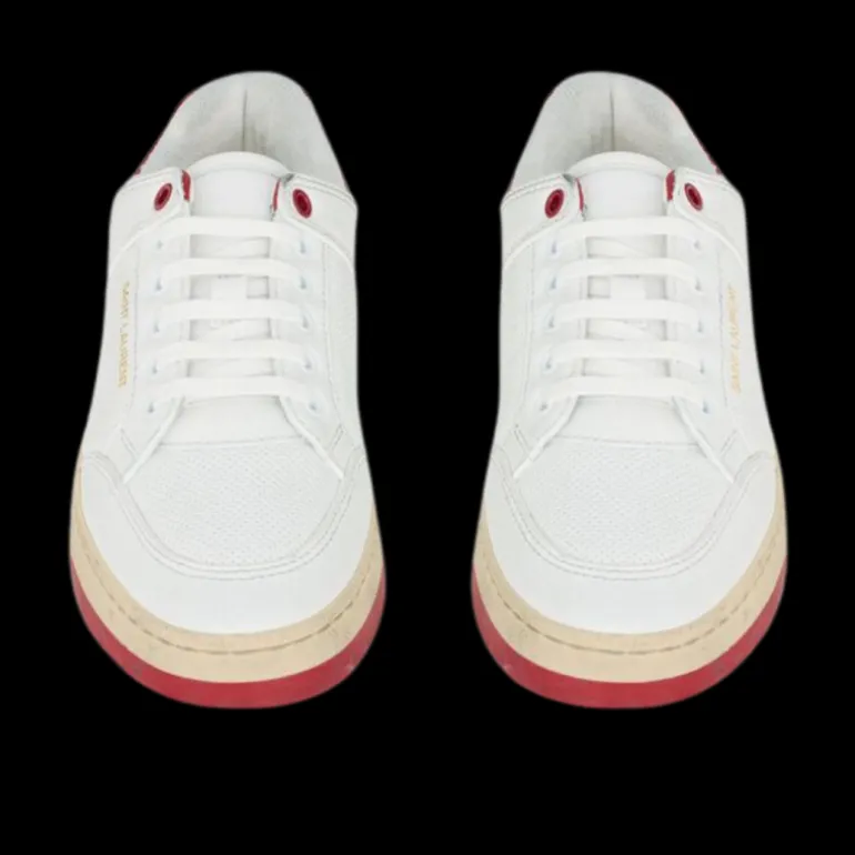 baskets basses SL61 cuir blanc rouge semelle effet usé