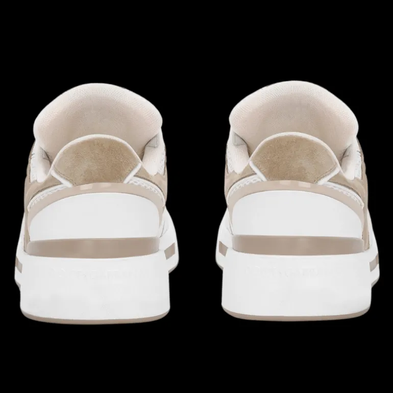 Baskets New Roma bi matière cuir veau blanc daim beige