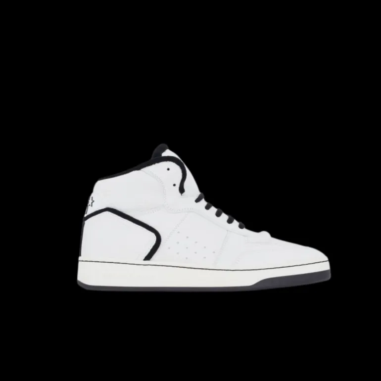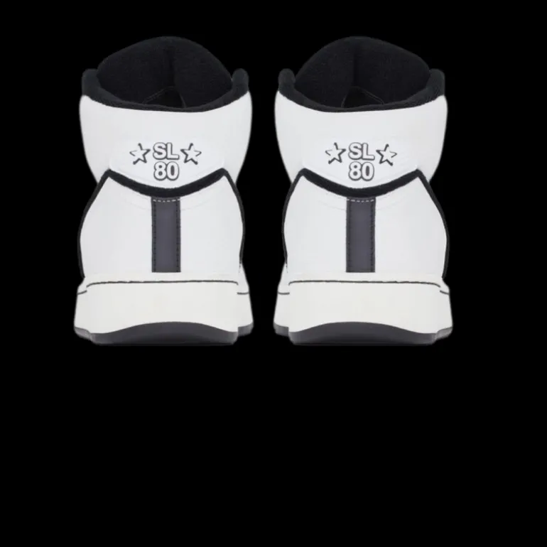 baskets montantes SL/80 cuir lisse grainé blanc noir