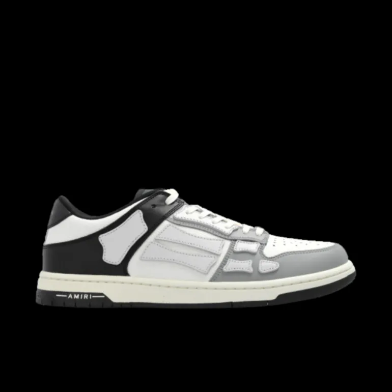 Baskets Sneakers SKEL cuir gris blanc squelette talon noir