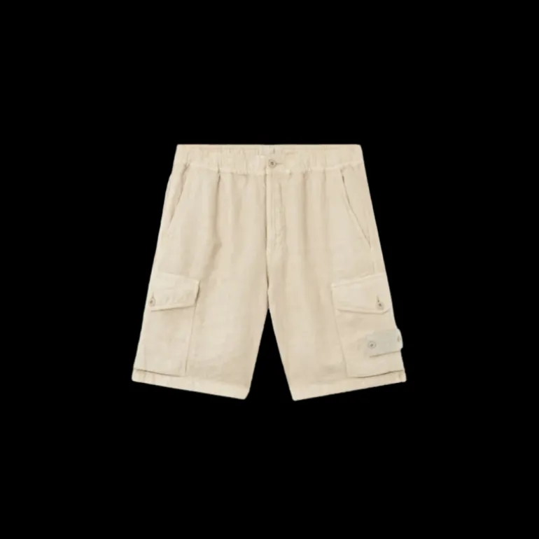 Bermuda cargo Ghost taille élastique lin diagonal beige multi poches