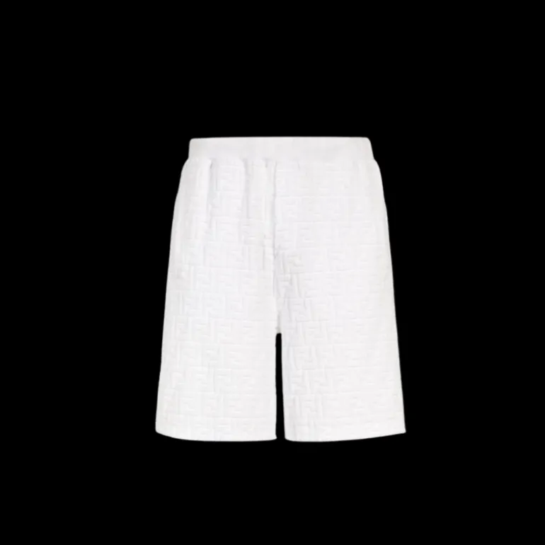 Bermuda taille élastique coton éponge blanc FF relief poches