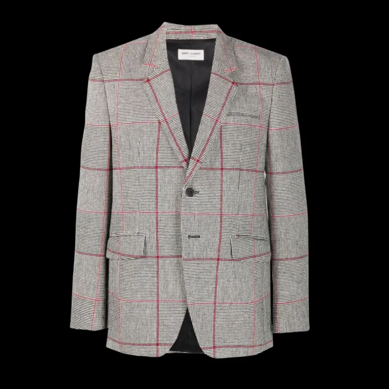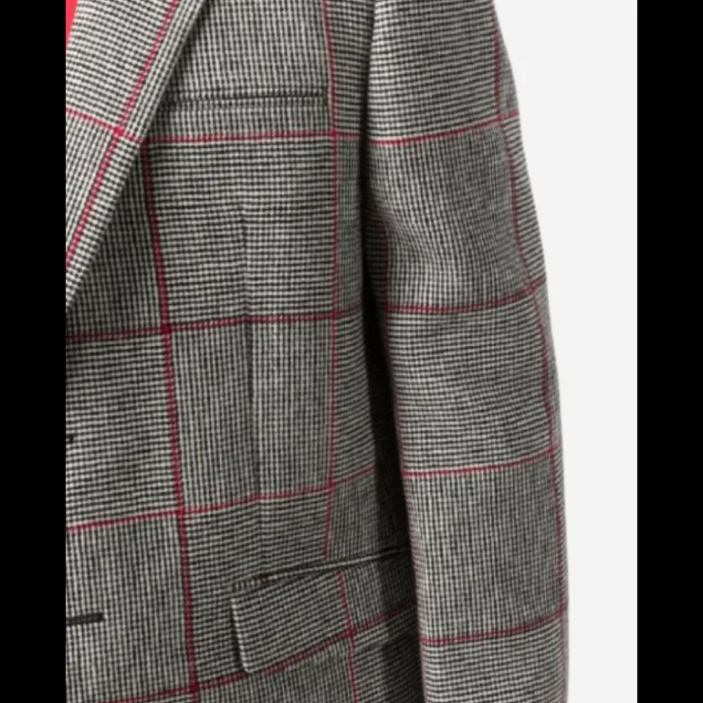 Blazer à imprimé pied de poule carreaux rouge