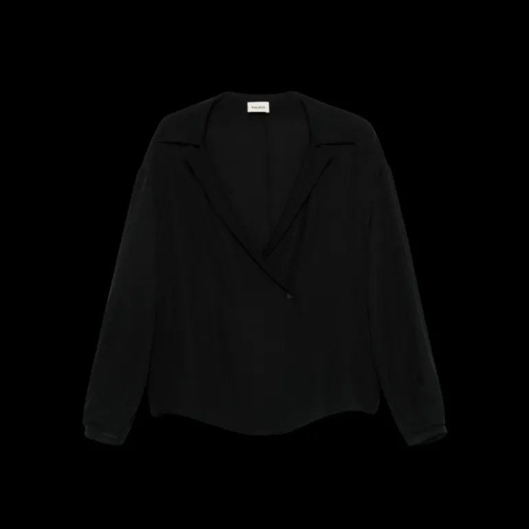 La popeline délavée accentue la légèreté sculpturale de cette silhouette cache-cœur. Avec des revers larges et allongés et des manches plissées.