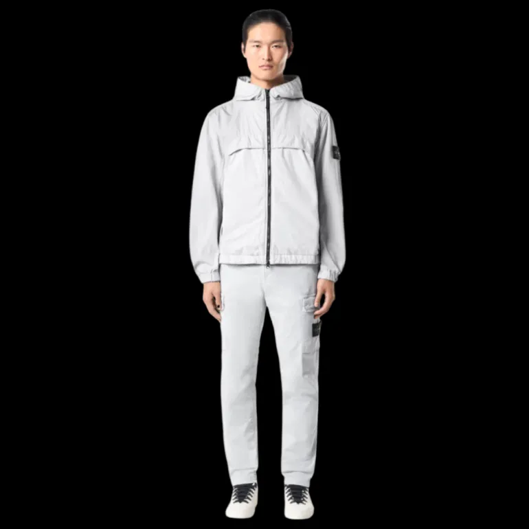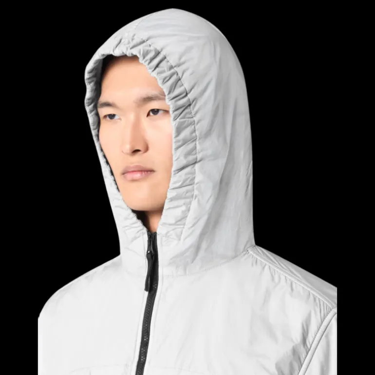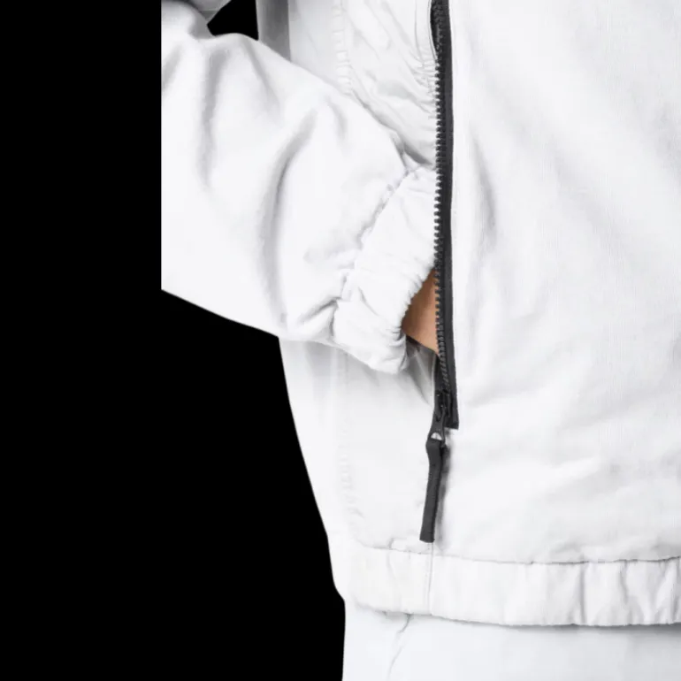 Capuche doublée en jersey de coton avec bord élastiqué. Rabat arrondi sur la poitrine, poches mains verticales sur les côtés avec fermeture zippée. Badge Stone Island sur la manche gauche. Poignets et bord inférieur élastiqués. Empiècement au dos. Fermeture zippée bidirectionnelle.