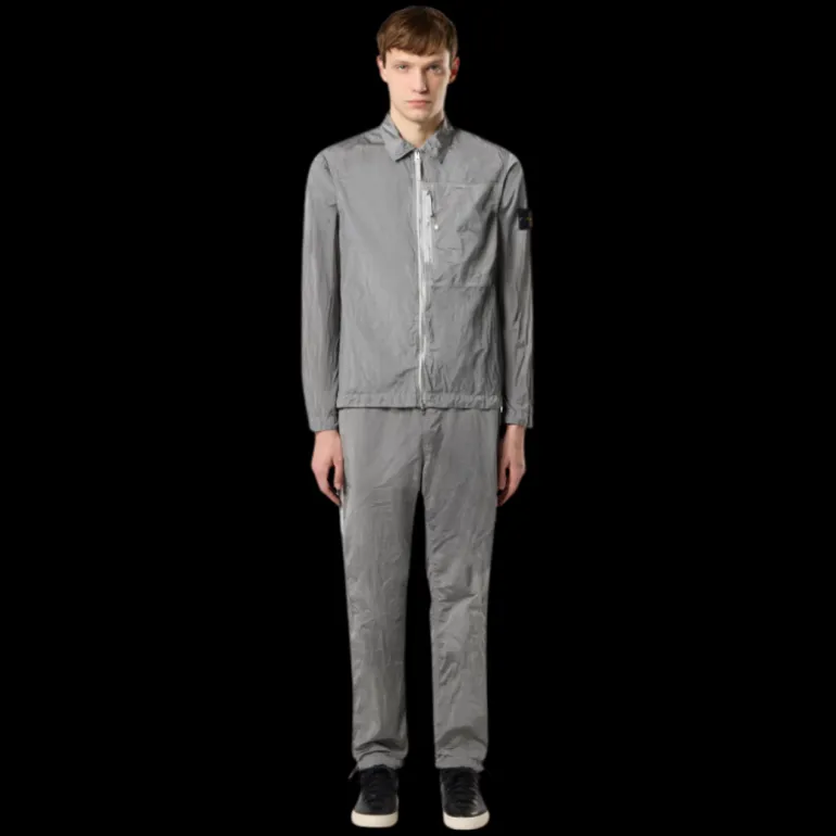 Blouson à capuche fabriqué en Nylon Metal, un nouveau tissu irisé et écoresponsable de Stone Island. L’évolution de ce tissu emblématique intègre l’utilisation de fils régénérés ECONYL® : le nylon en fin de vie, pré et post-consommation, est recyclé par un processus complexe de dépolymérisation pour créer cette fibre qui conserve les mêmes caractéristiques intrinsèques que le nylon issu de matières premières fossiles. Le tissu est résineux à l’intérieur pour une légère résistance à l’eau et au vent. La pièce finie est ensuite soumise à un double procédé de teinture, avec l’ajout d’un agent déperlant spécial.