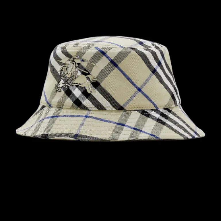 Un bob fabriqué en Italie à partir d’un mélange de coton, tissé avec le Burberry Check. Le style non doublé est orné du motif Equestrian Knight.