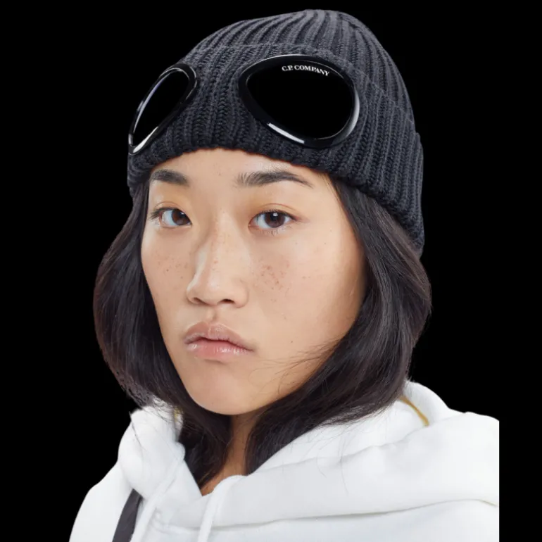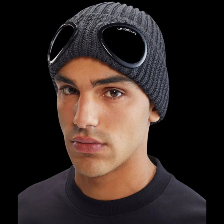 Bonnet laine côtelée gris acier lunettes