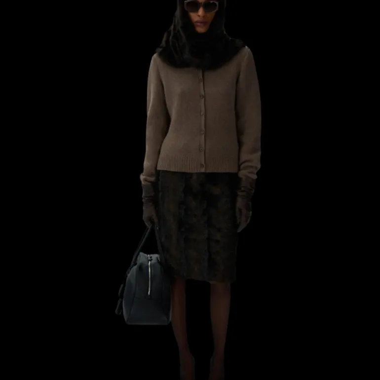 Cardigan boutons col rond cachemire marron