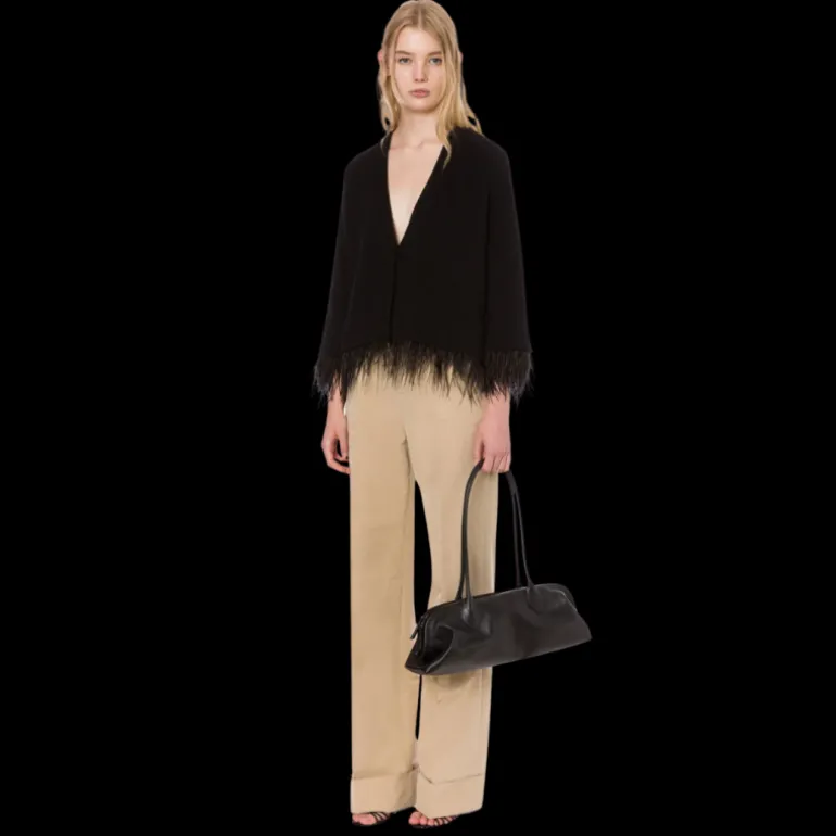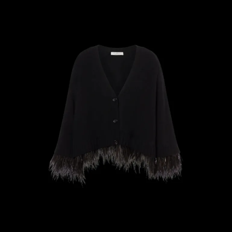 Cardigan col V cachemire laine recyclé noir bas plumes