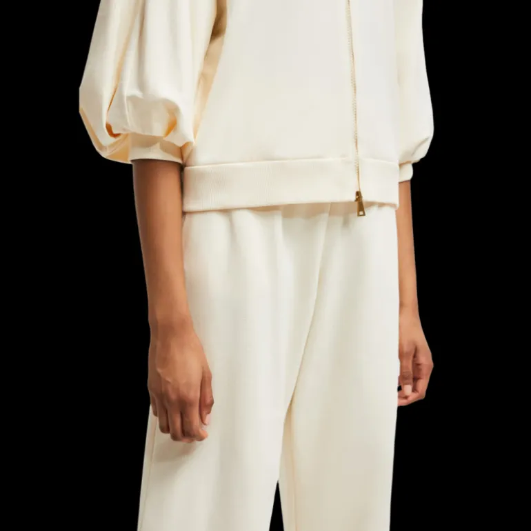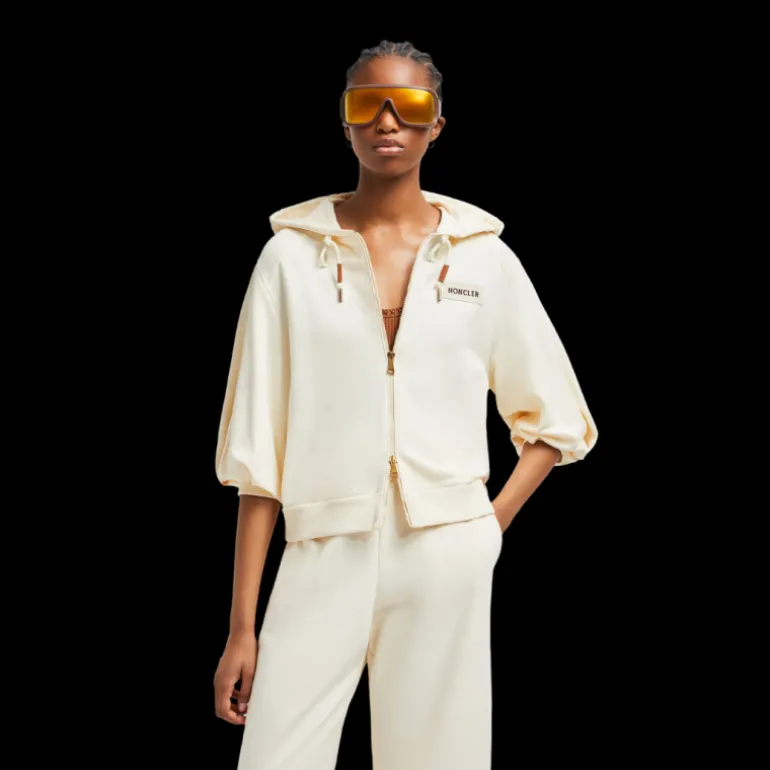Cardigan sweat zippé coton écru manche ballon courte capuche logo