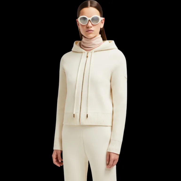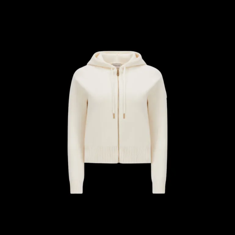 Cardigan zippé à capuche en laine et cachemire écru