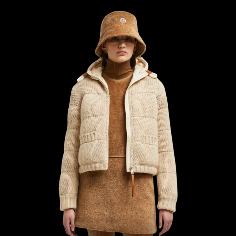 Cardigan zippé matelassé à capuche laine beige