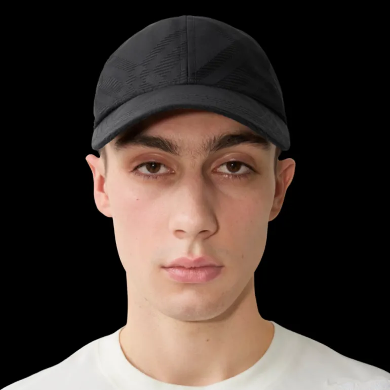 Casquette de baseball fabriquée en Italie à partir d’un mélange de nylon. Le modèle est tissé en jacquard avec un motif à carreaux ton sur ton et non doublé pour une sensation de légèreté.