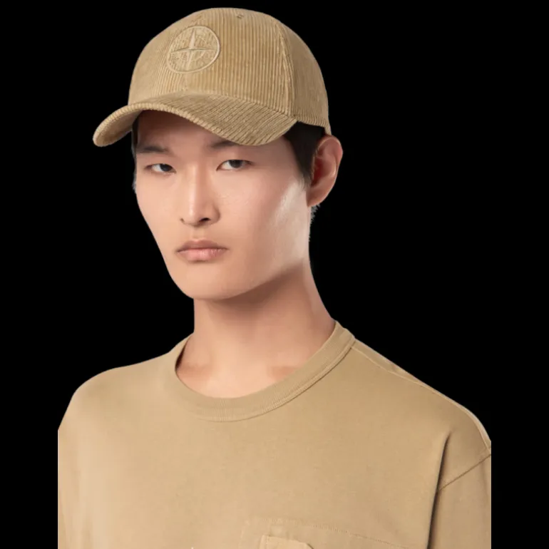 Casquette coton velours côtelé beige broderie logo