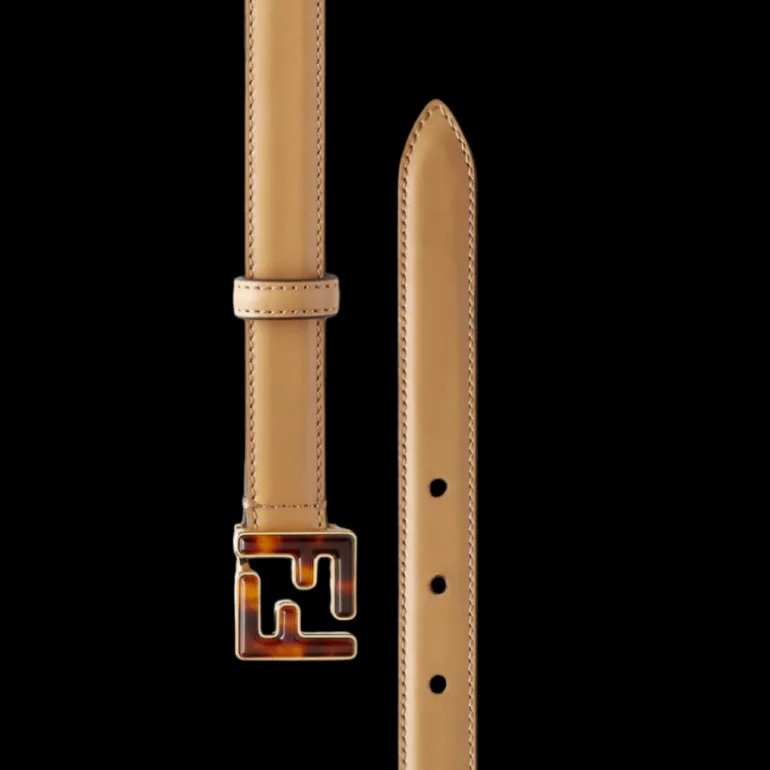 Ceinture cuir beige boucle FF écaille havane