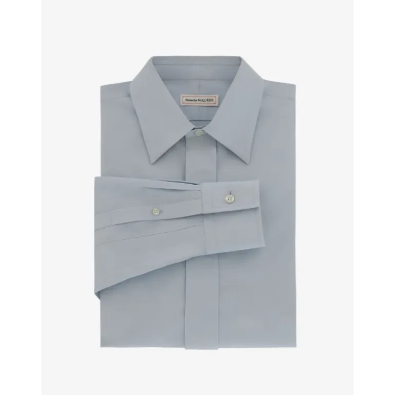 Chemise Popeline coton épaules Tombantes Bleu Nuage