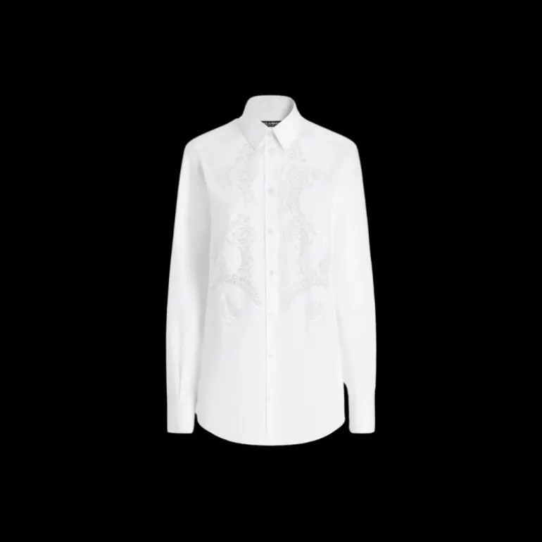 Chemise en popeline de coton avec incrustation de dentelle