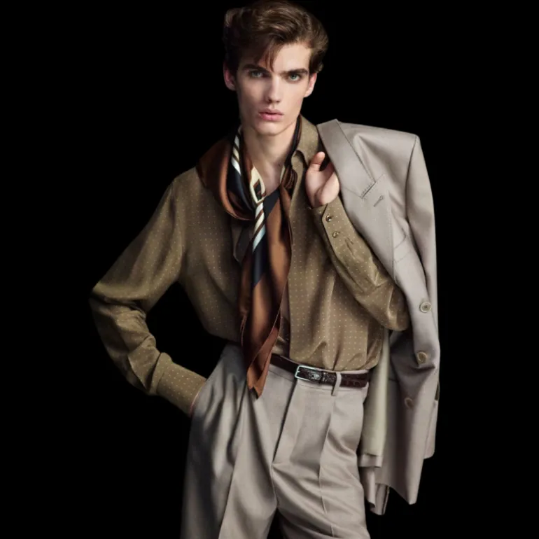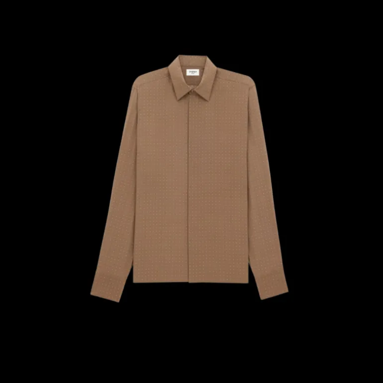 Chemise boutonnée en soie certifiée, dotée d’une coupe décontractée, d’un col en pointe et d’épaules droites.