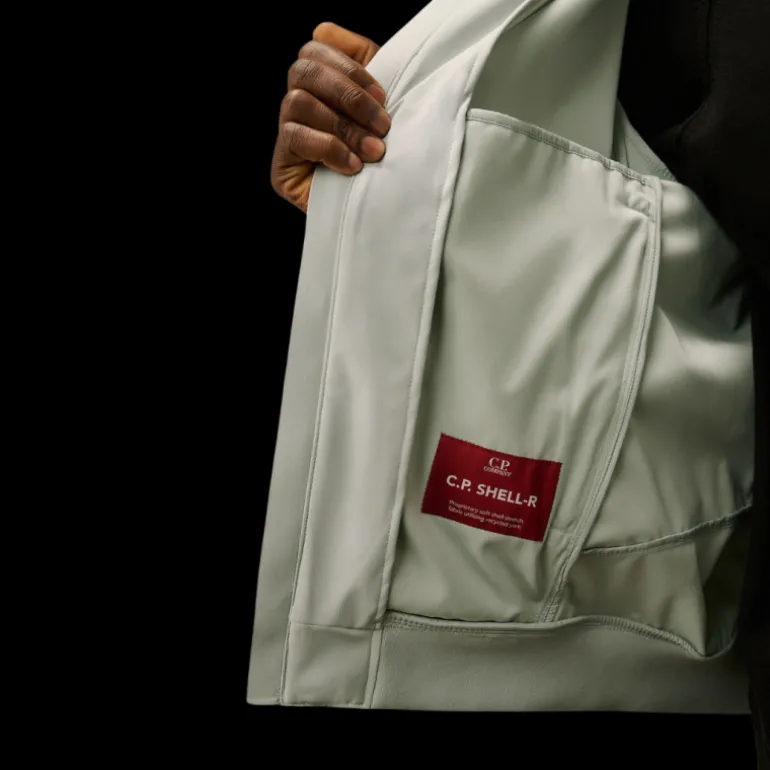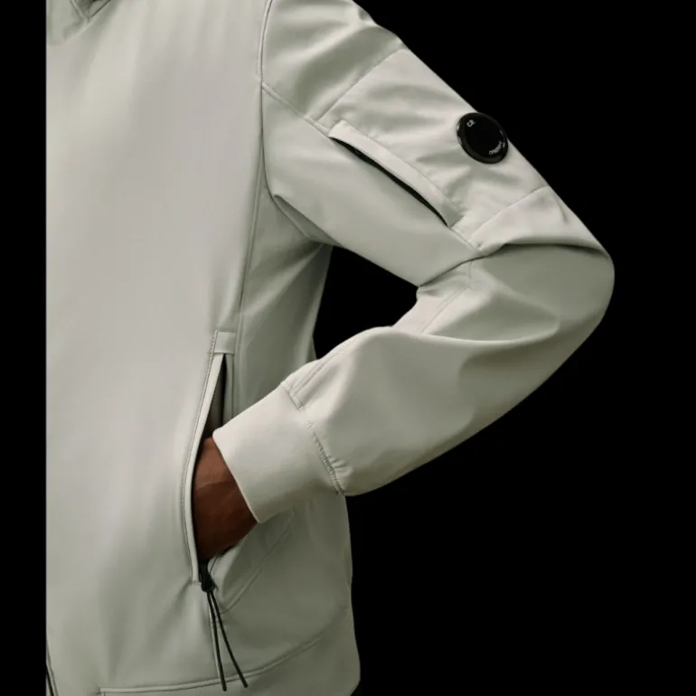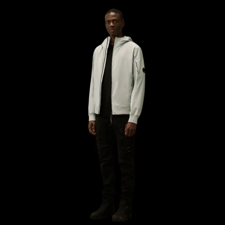 Veste à capuche CP Shell-R nylon gris perle bleu poche lentille
