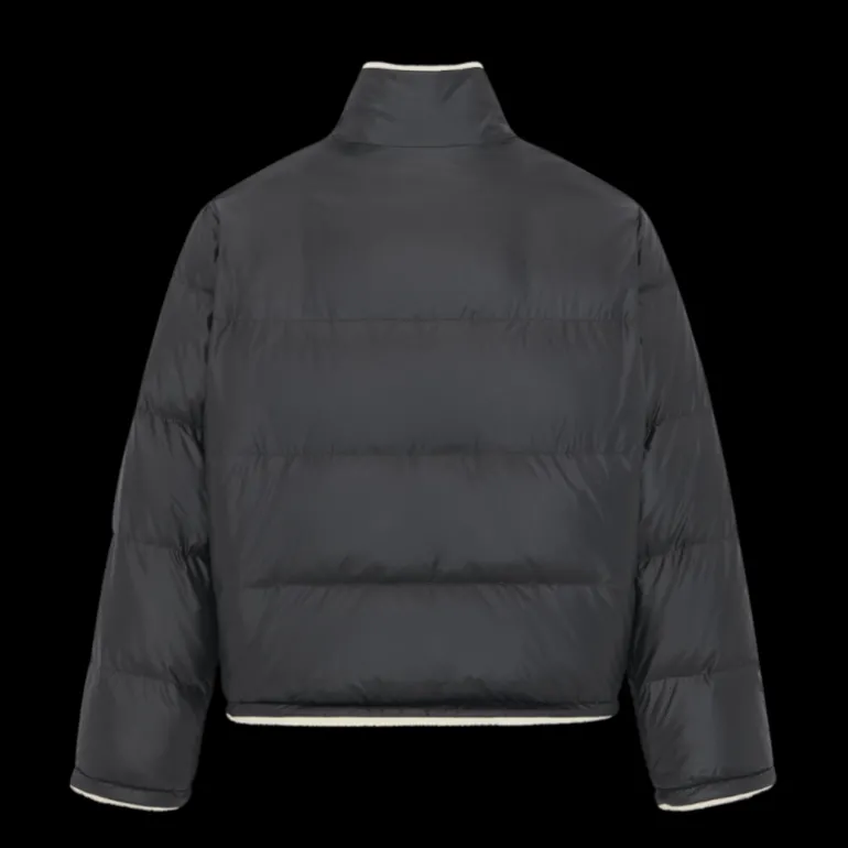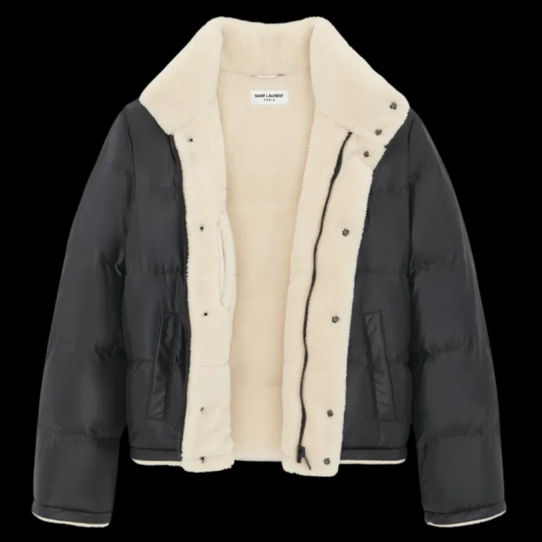 - doudoune ornée d’un col montant et d’une broderie saint laurent ton sur ton sur la poitrine.