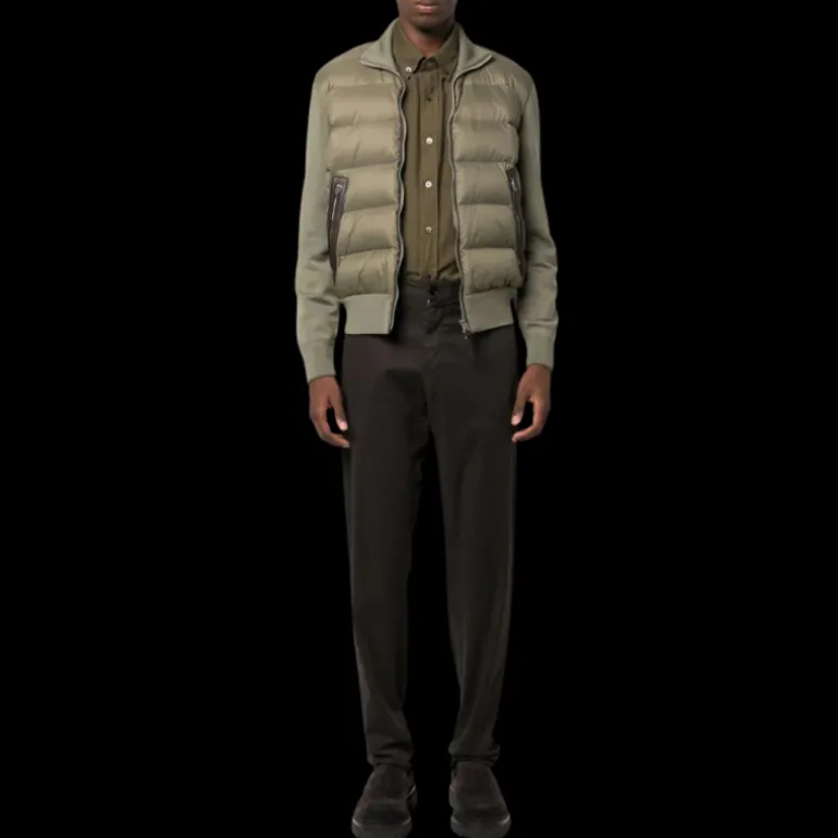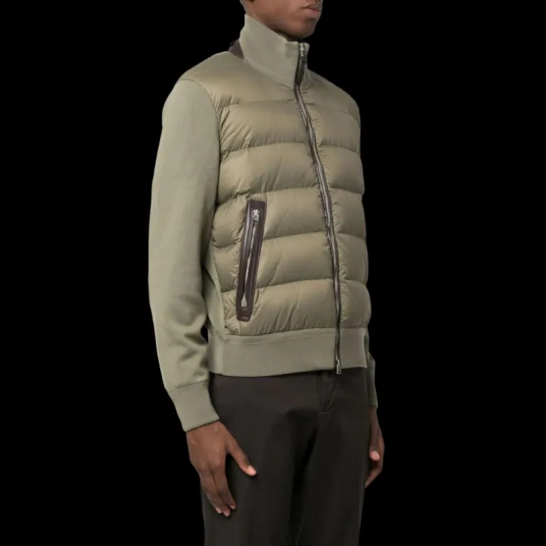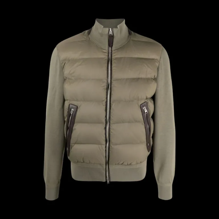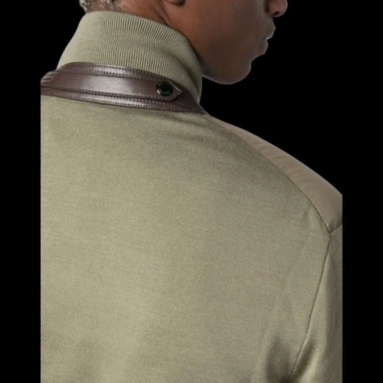 doudoune cardigan zippé laine kaki manches maille col cuir