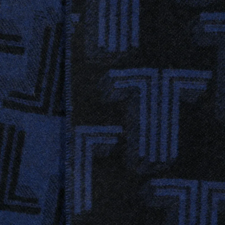 Conçue dans un coloris noir et bleu, cette écharpe de Lanvin est filée en Italie à partir d’un délicat mélange de laine et de cachemire et finie avec des bords frangés. Un motif monogramme discret reflète l’héritage de la maison.