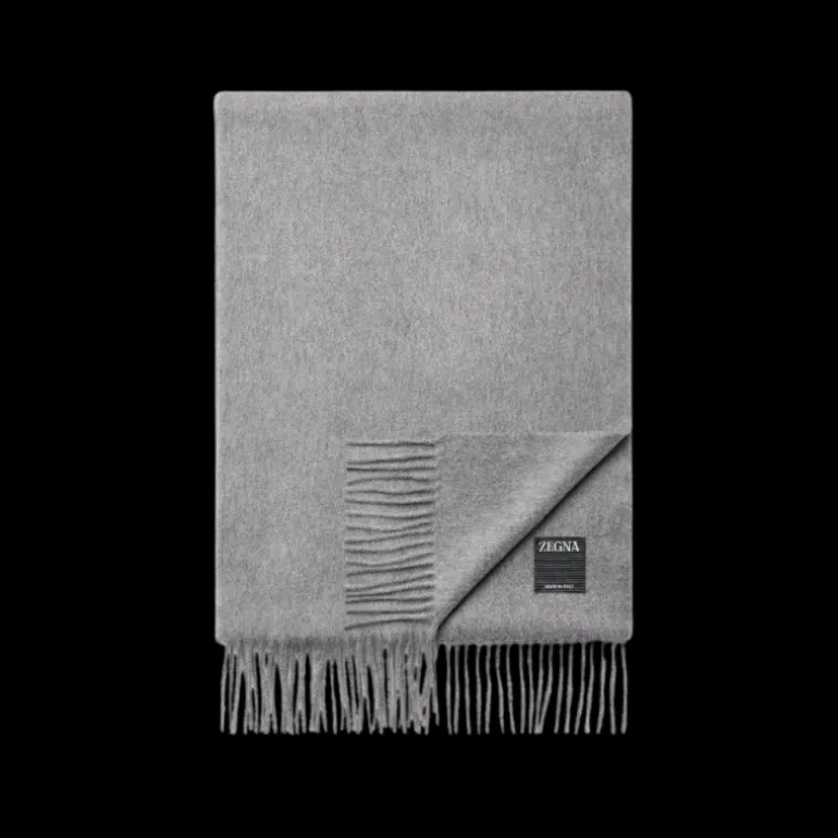 Echarpe Cachemire gris franges