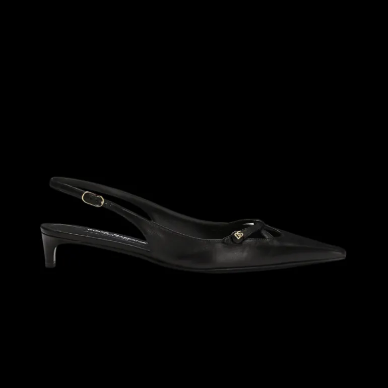 Escarpins Slingback à bride arrière cuir nappa noir logo DG doré