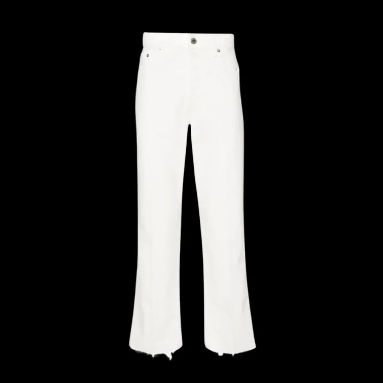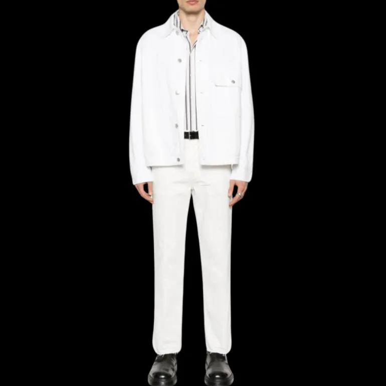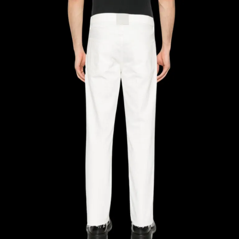 Jean coupe droite coton blanc patch logo cuir blanc dos
