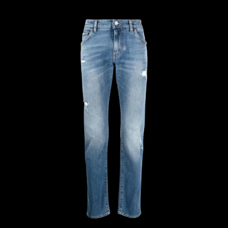 Dolce & Gabbana met en valeur l’opulence caractéristique de la marque sur cette paire de jeans en denim en ajoutant une plaque logo en métal sur la poche arrière plaquée. Associé à des détails déchirés, le vêtement a également une touche contemporaine.