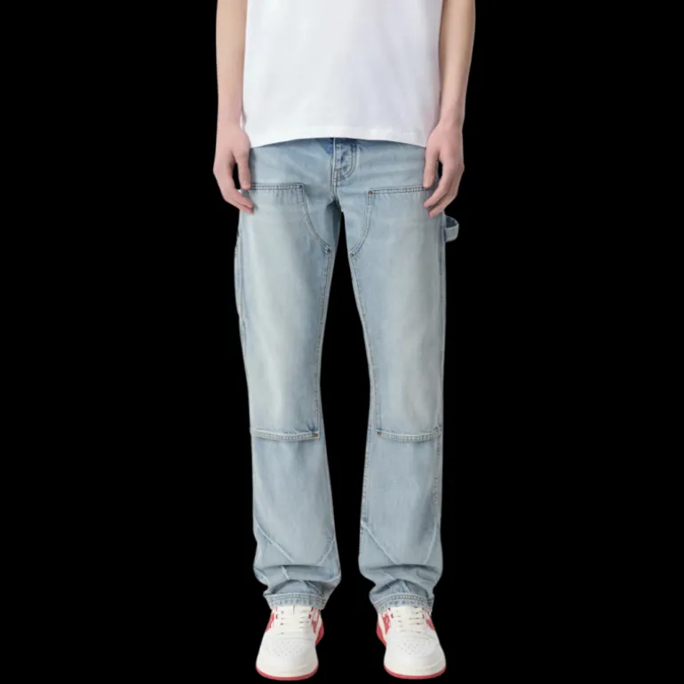 Pre-Fall 2024 menswear presents novel shapes in denim, infusing the heritage fabric with new meaning. The Carpenter Jean is designed with classic five-pocket construction with front patch panels, side cargo pocket, and a hammer loop.