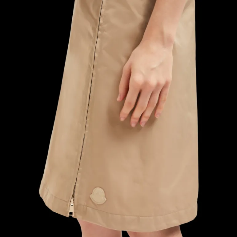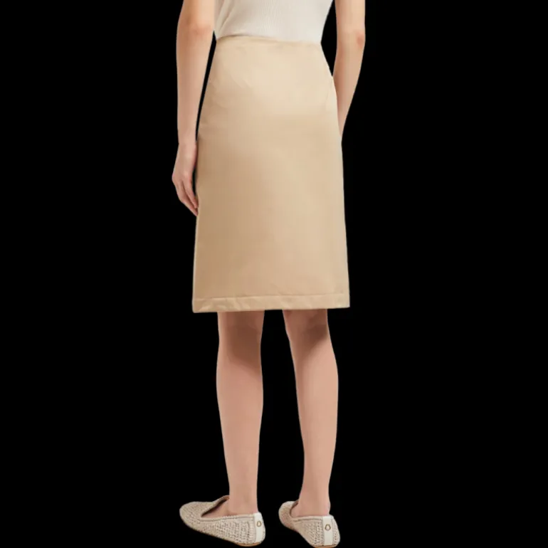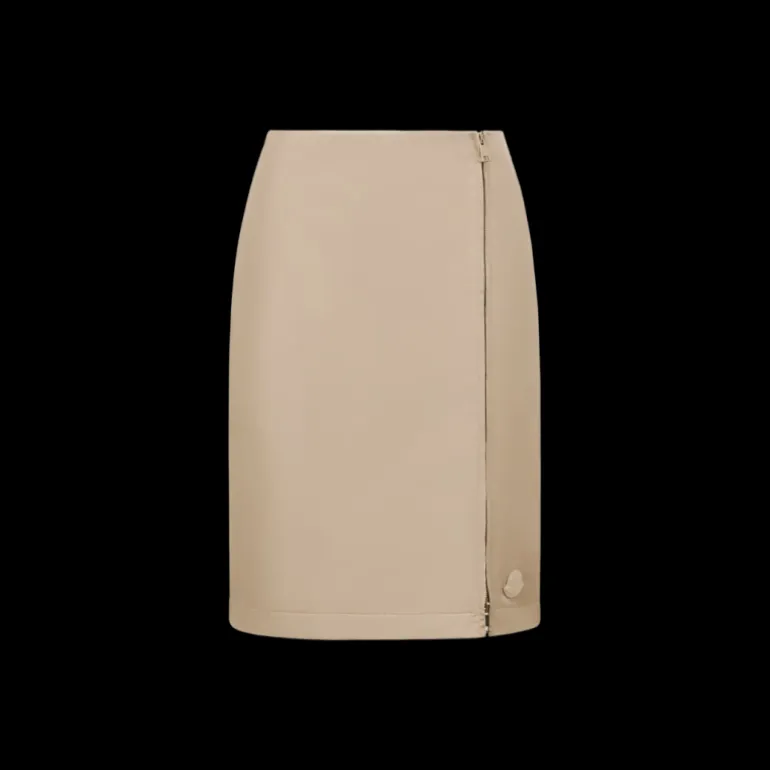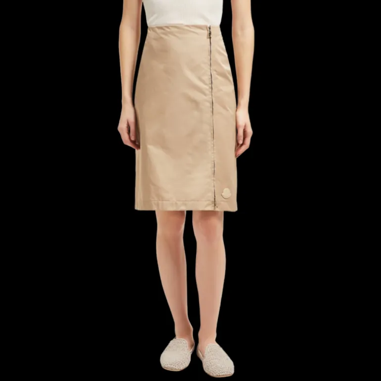 Jupe aux genoux gabardine nylon beige zip coté