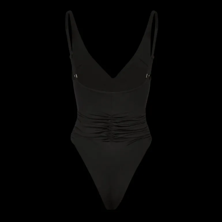 Maillot de bain 1 pièce décolleté V fronce noir fleurs