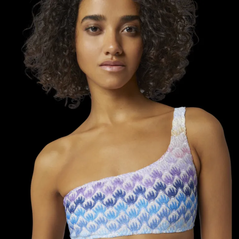 Maillot de bain 2 pièces bandeau asymétrique viscose zig zag bleu