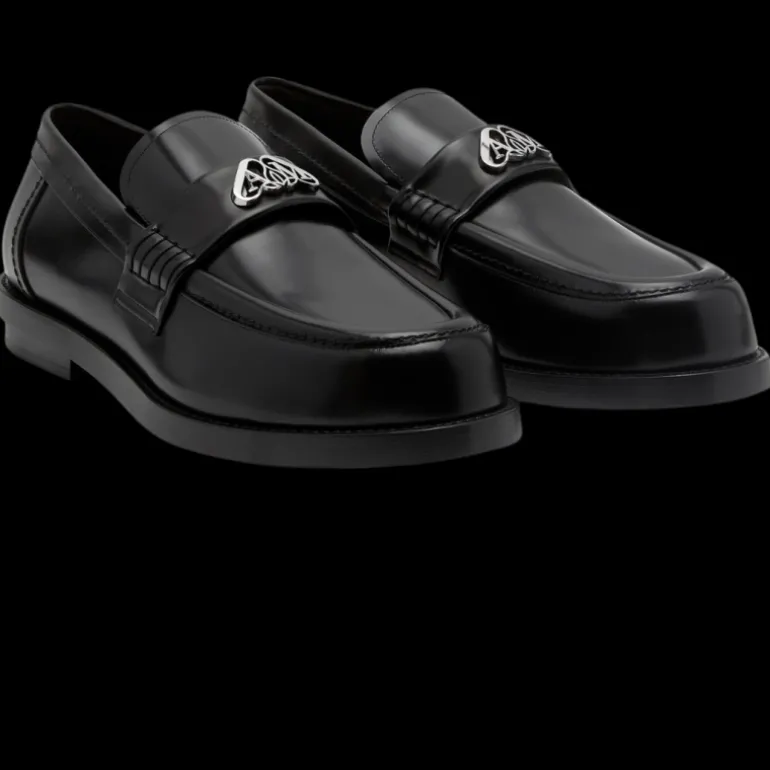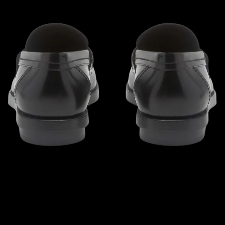 Mocassins en cuir noir ornés d’une petite plaque ornée du logo Seal finition gris acier. Ces mocassins à bout rond sont rehaussés d’une épaisse surpiqûre en point de chaînette. Ce modèle est doté d’une semelle empilée en cuir souple.