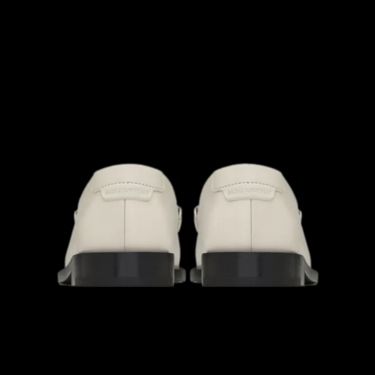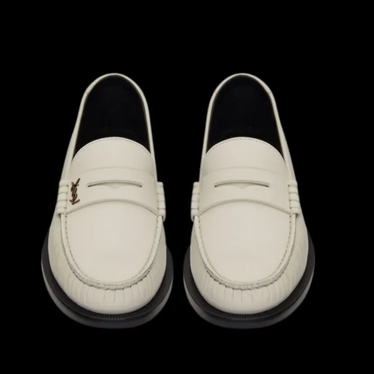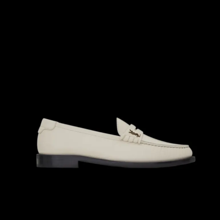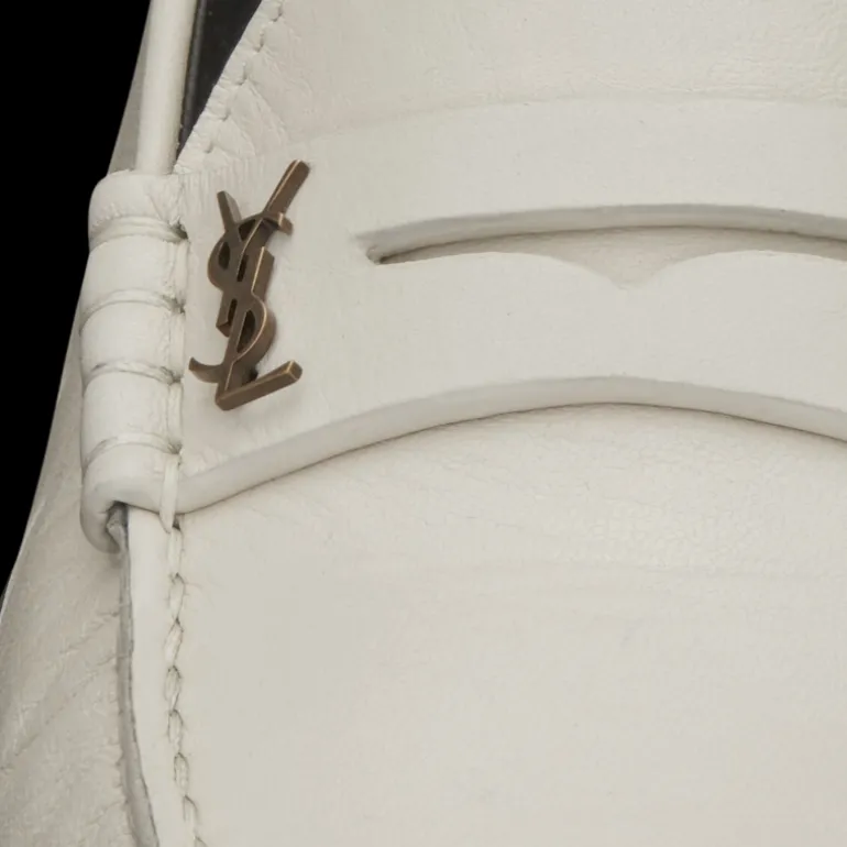 Mocassins Cuir crème Semelle noire Monogramme YSL Or