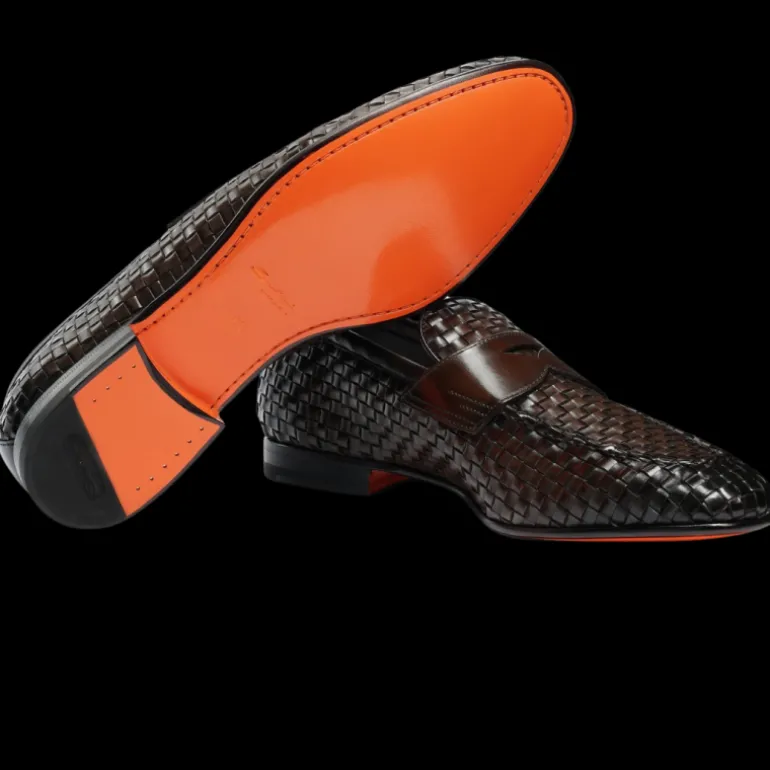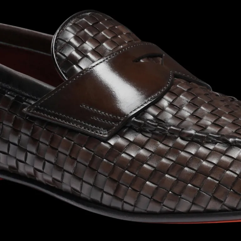La rencontre de la créativité stylistique et du savoir-faire artisanal donne vie à des accessoires exclusifs au charme unique et inimitable. Ce mocassin en cuir présente des velature colorées (une patine exclusive de Santoni) et une décoration entrelacée à la main créant une sensation surprenante au toucher. Sa construction sans doublure en fait un modèle particulièrement adapté aux tenues d’été.