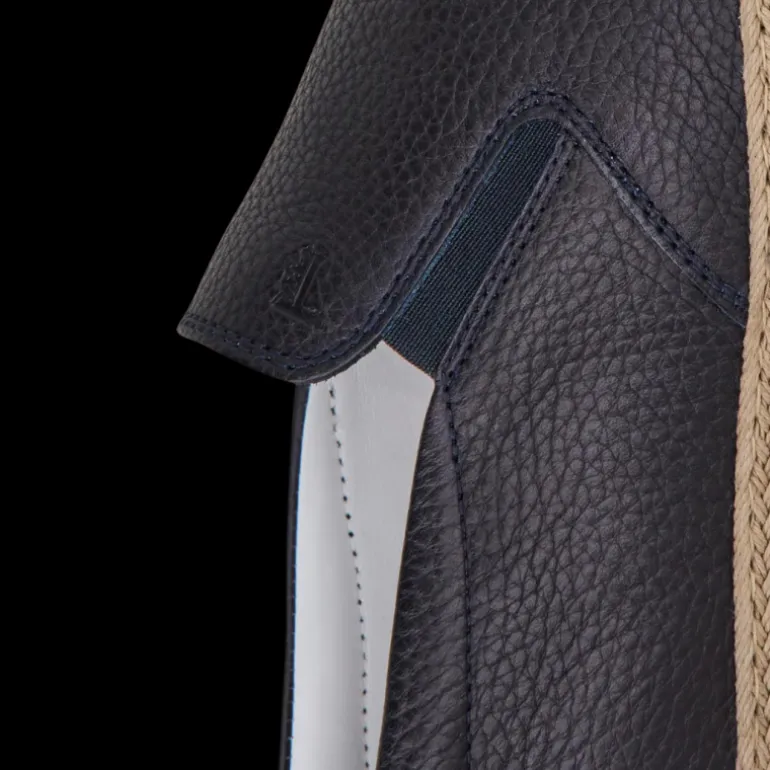 Mocassins Slip on cuir grainé bleu marine semelle corde
