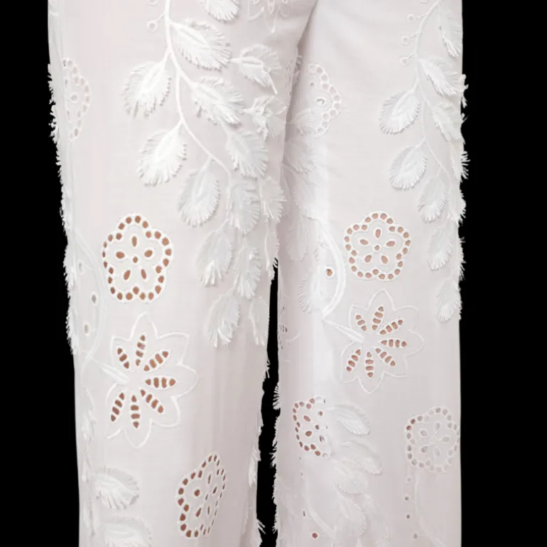Pantalon Sangallo coton blanc broderie fleurs franges