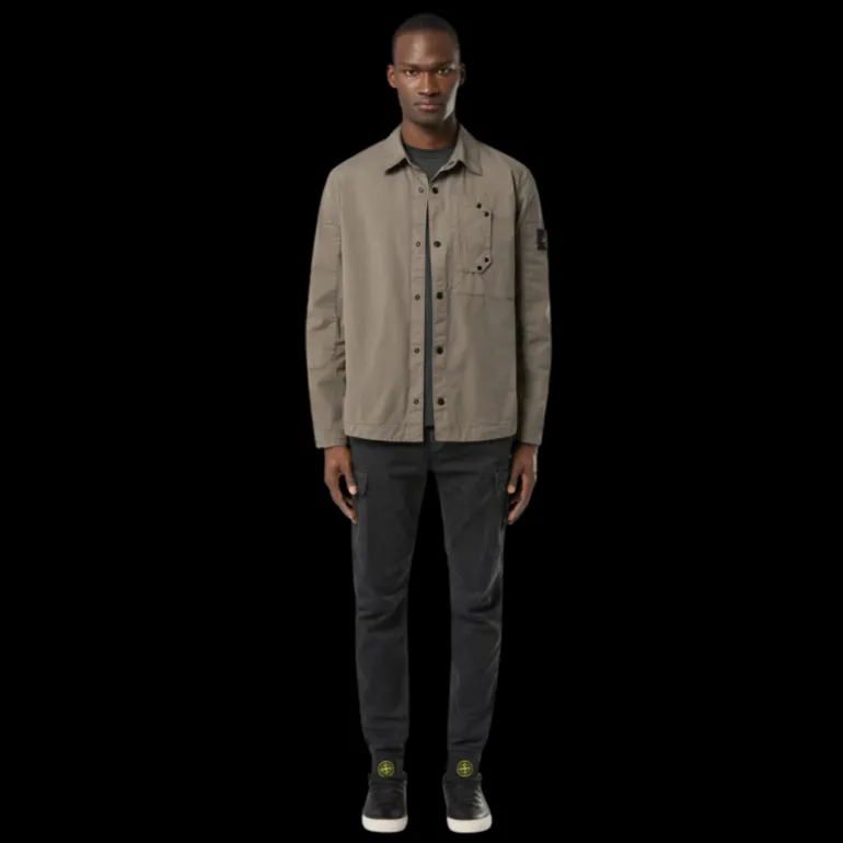 Poches passepoilées avec fermeture zippée. Une poche passepoilée à fente oblique à l’arrière, avec fermeture à bouton-pression dissimulée. Sur chaque jambe, une poche plaquée à soufflets, avec rabat et fermeture à bouton-pression dissimulée ; écusson Stone Island sur la poche gauche. Genoux structurés. Bande élastique au niveau du bas de la jambe. Taille élastique avec cordon de serrage interne. Fermeture zippée. Coupe fuselée classique.