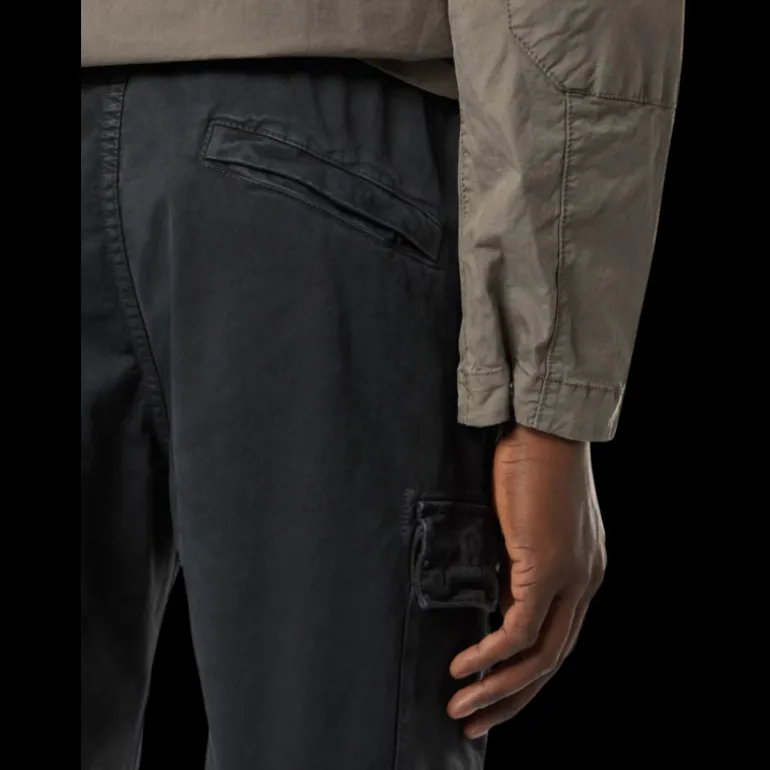 Pantalon cargo en sergé de coton biologique brisé stretch, teint en pièce, avec traitement effet « OLD » exclusif, pour un rendu légèrement usé et un aspect 3D.