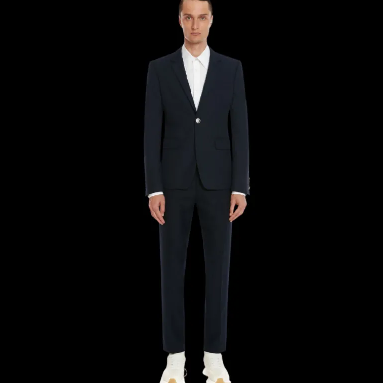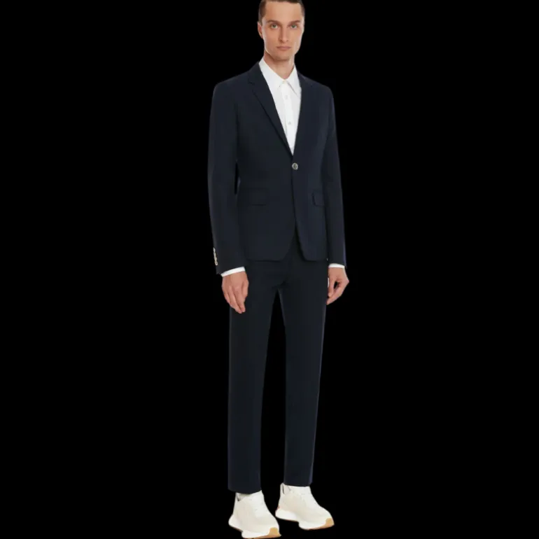 Pantalon Cigarette Ajusté coton bleu marine bouton métal