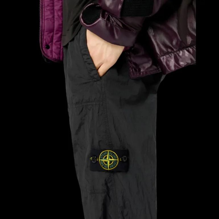Poches passepoilées avec fermeture par bouton-pression dissimulée. Poche plaquée droite sur la jambe gauche avec fermeture zippée dissimulée, écusson Stone Island sur le côté. Ourlets élastiques. Taille élastique avec cordon de serrage interne. Fermeture zippée. Coupe classique.