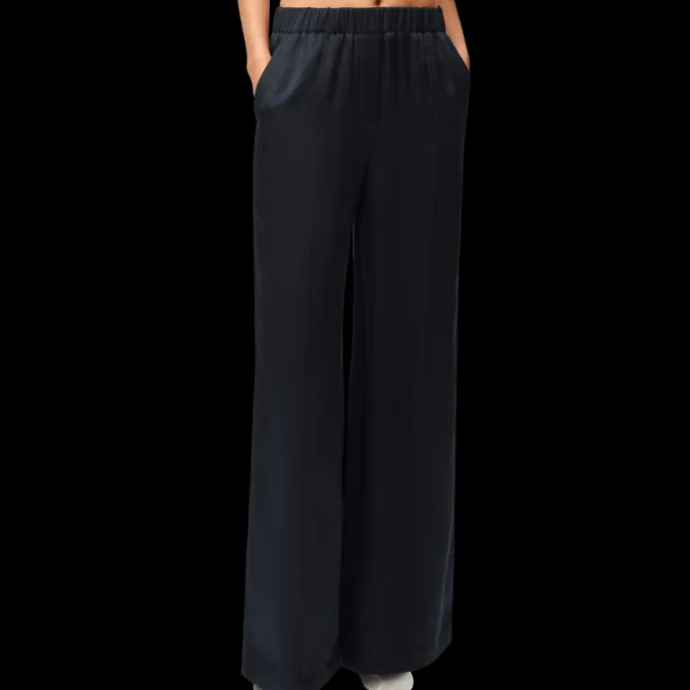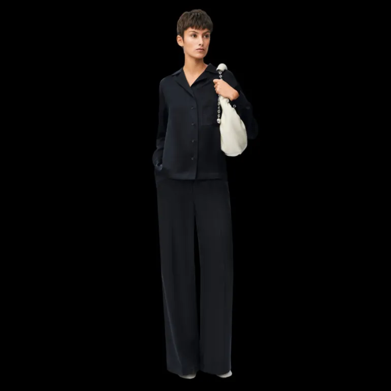 Pantalon de pyjama large droit soie satin bleu nuit
