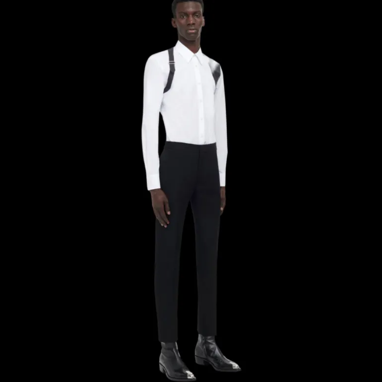 Pantalon de Smoking Cigarette laine noire bande satin