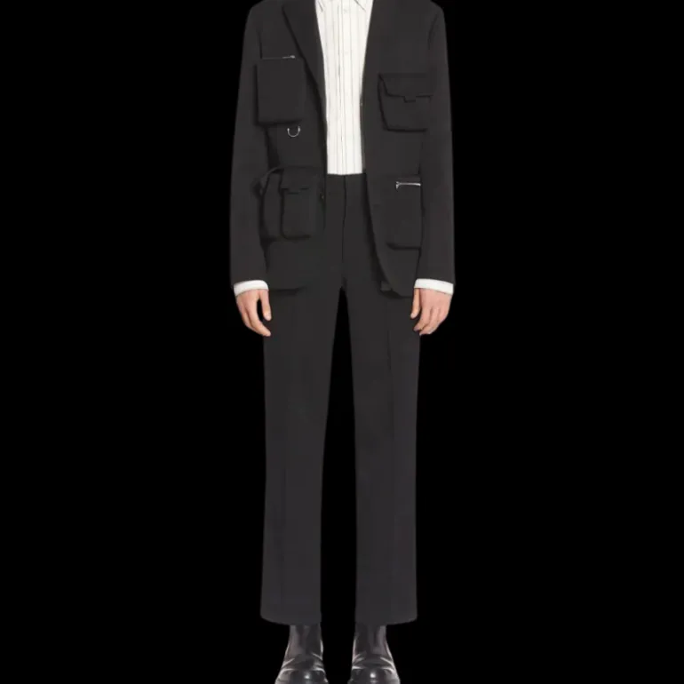 Pantalon droit noir mousqueton métal