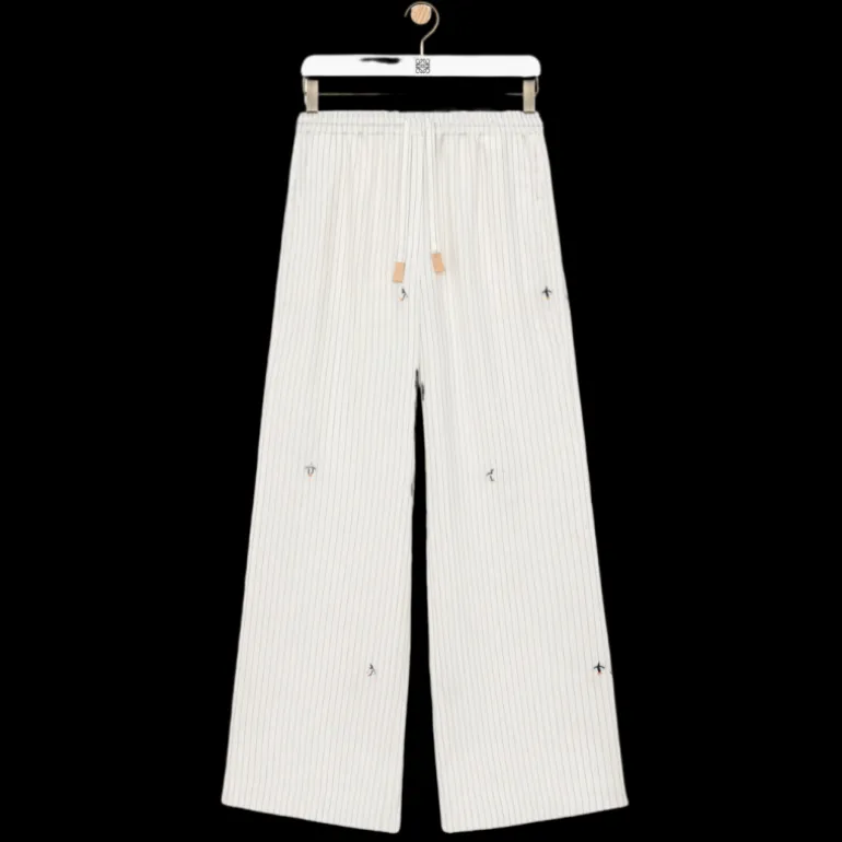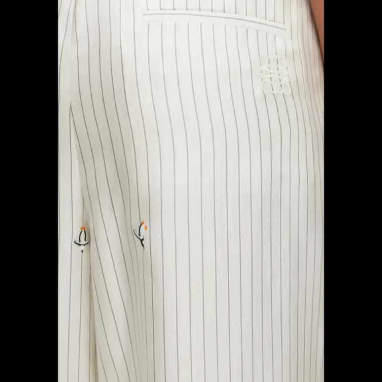 Pantalon pyjama soie écrue rayures broderie pingouin LOEWE x Suna Fujita