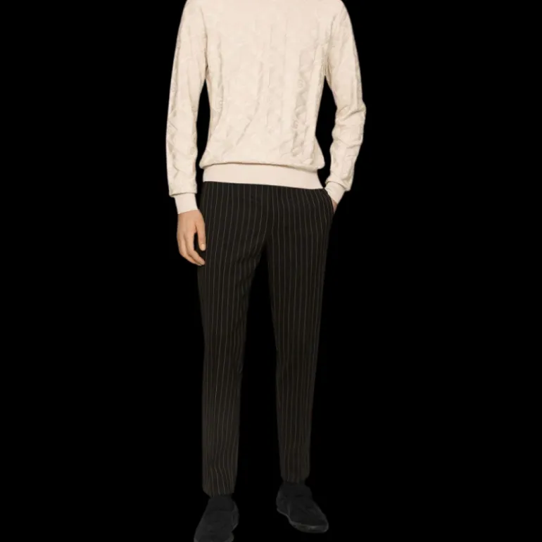 pantalon skinny laine noire à fines rayures